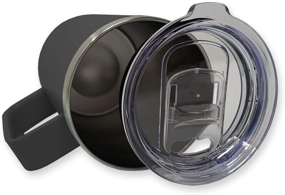 The design and text won't fade away since we laser-engrave it right onto the mug. Comes with a snug fitting lid with slider opening to help prevent spills.